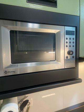 Microondas encastrable de la marca Balay con acabado en acero inoxidable. Limpio y en su caja. Funciona todo ok