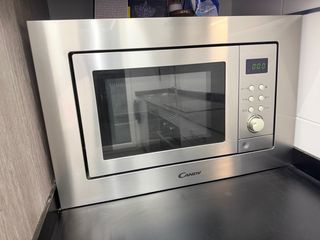 Microondas Candy de acero inoxidable, diseñado para integrar en tu cocina. Su acabado metálico le da un toque moderno. - Diseño moderno en acero inoxidable. - Panel de control con botones y dial. - Puerta con ventana para ver el interior. Muy cuidado, funciona en perfectas conficiones, se vende por removacion de mobiliario y electrodomestixos de cocina.