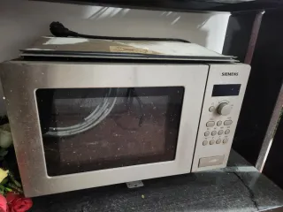 Microondas integrable Siemens HF15M552 en perfecto estado. Diseño elegante en acero inoxidable y cristal, ideal para encastrar en columna o mueble alto de cocina. Calidad Siemens: duradero y fiable. Especificaciones técnicas: Potencia: 800W con 5 niveles de ajuste. Capacidad: 18 litros (plato giratorio de 24,5 cm). Funciones: 7 programas automáticos de cocción y descongelación por peso. Estética: Pantalla digital con reloj y mandos ocultables (push-pull) para una limpieza fácil. Estado: Muy cuidado, interior de acero inoxidable impecable (no se oxida como los esmaltados). Funciona perfectamente. Un poco desgastado botón de apertura
