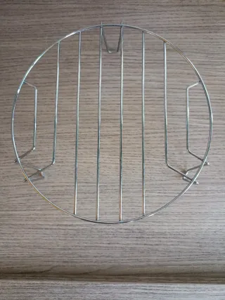 Rejilla metálica redonda para microondas. Su diseño permite elevar los alimentos. Altura 6 cm. - Material: Metal cromado. - Forma: Redonda. - Patas de apoyo integradas.