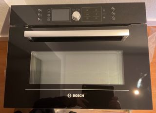 Horno y microondas Midea con un diseño moderno y elegante. - Acabado frontal en cristal negro. - Panel de control táctil con pantalla digital. - Tirador metálico. Tiene horno con todas sus funciones y puedes seleccionar solo microondas, con todas sus funciones. Adjunto instrucciones. Está limpio, no tiene restos, y en perfecto estado.