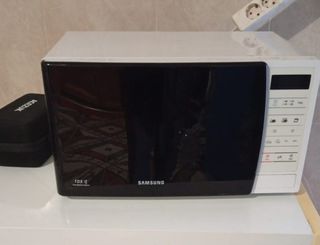 Microondas de la marca Samsung en excelente estado, casi nuevo. Su diseño moderno se adapta a cualquier cocina. - Color plateado y negro. - Panel de control digital con múltiples funciones. - Puerta con cristal reflectante.