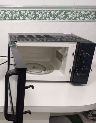 Microondas Taurus negro de 700W de potencia. Función descongelar. Se regala tapa de plástico antisalpicaduras. En perfecto estado, se vende por mudanza. Entra en nuestro perfil para ver más productos.