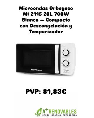 • De media, comprar Microondas Orbegozo en Wallapop es un 44% más barato que comprar este tipo de producto nuevo