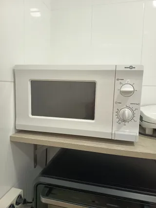 Microondas de la marca Bluesky en color blanco. 4 años de uso. Se vende por cambio de cocina. Funciona perfectamente. - Diseño compacto y funcional. - Panel de control intuitivo con diales para potencia y tiempo.
