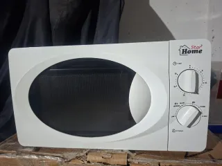 Microondas blanco de la marca Star Home. Ideal para calentar y cocinar alimentos. - Diseño compacto y funcional. - Panel de control con temporizador y ajuste de potencia. - Puerta con ventana para visualizar el interior.