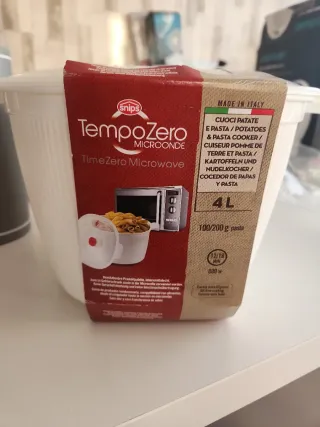 Recipiente para microondas Snips TempoZero. - Capacidad de 4 litros. - Ideal para cocinar patatas y pasta. - Fabricado en Italia. - Apto para microondas de hasta 800W. - Tiempo de cocción: 12-18 minutos.