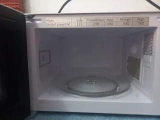 Microondas de la marca OK, en excelente estado y con muy poco uso. - Potencia: 700W - Niveles de potencia: Bajo (115W), Medio-Bajo (230W), Medio (390W), Medio-Alto (540W), Alto (700W) - Función de descongelación