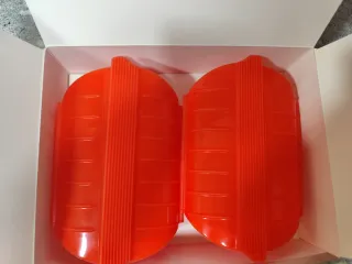 Estuche Lekue de color rojo, ideal para cocinar de manera sana y rápida en microondas. Dos unidades, se venden por separado. Precio por unidad. Sin usar