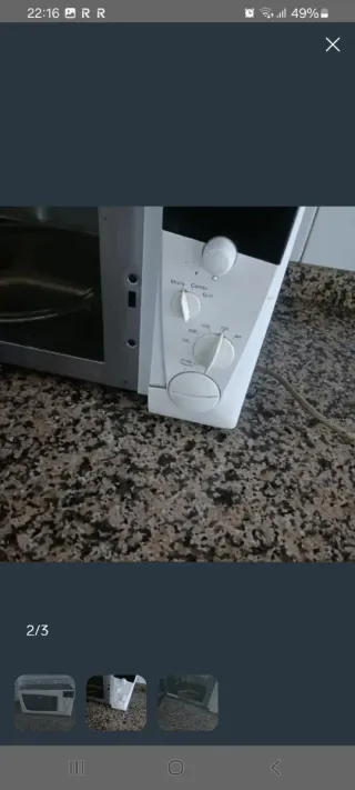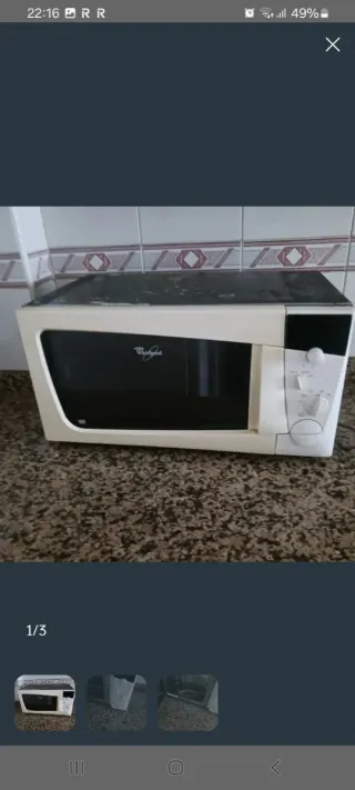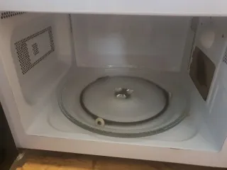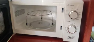Microondas de color blanco, perfecto para tu cocina. - Diseño compacto. - Mandos giratorios para potencia y tiempo. Tiene marcas y desperfectos por el paso del tiempo pero funciona perfectamente. No es negociable, estará anunciado hasta el sábado.