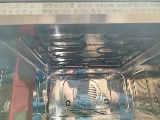 Microondas-horno de la marca Saivod con acabado en acero inoxidable. 20cm Alto 36 profundo 51 anch. Funciona perfectamente lo cambio porque es muy grande para mí cocina. Tiene un pequeño roto en el plato ( señalado en una foto) y a veces se despega el embellecedor de la puerta (señalado en otra foto)