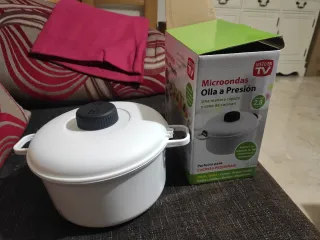 Olla a presión para microondas, ideal para cocinar de forma rápida y saludable. Su diseño permite retener la mayoría de las vitaminas y minerales de los alimentos. - Capacidad: 2.8 Litros. - Perfecta para cocinas pequeñas. - Ideal para carnes, arroz, pollo, pasta, judías, guisos y vegetales.