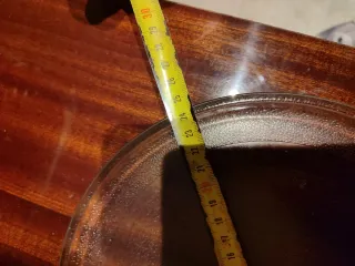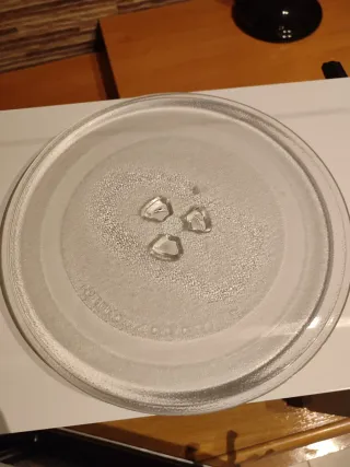 Plato de cristal pequeño para microondas. Tiene un diseño circular. - Material: Vidrio. - Diámetro: 24 cm Se puede recoger en Alcalá de Henares o en Madrid en algunas ocasiones