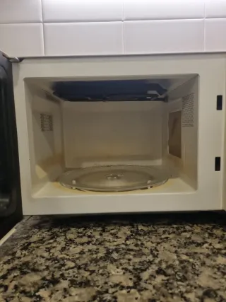 Funciona perfectamente, lo único es estético, puedes poner un poco de pintura. Microondas de la marca Bluesky en color blanco. Cuenta con dos mandos giratorios para ajustar la potencia y el tiempo. - Marca: Bluesky - Color: Blanco - Dos mandos giratorios