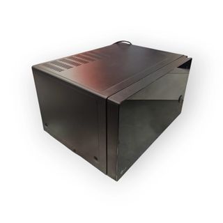 Microondas portátil de la marca Camp4, ideal para llevar a cualquier parte. Su diseño es compacto y moderno. - Color negro brillante. - Asa superior para transporte. - Pantalla digital. - Botones de control.