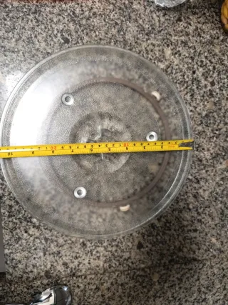 Plato de cristal para microondas con un diámetro de 30 cm. Diseñado para encajar en la mayoría de los hornos. - Diámetro: 30 cm - Material: Cristal templado - Borde texturizado 💢Lo vendo porque he comprado uno mas pequeño, se me rompió microondas anterior.