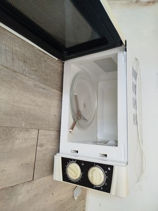Microondas de color bl blanco con claros signos de uso pero funciona perfectamente. - Niveles de potencia: Defrost, Low, Medium, High. - Temporizador: Hasta 35 minutos.