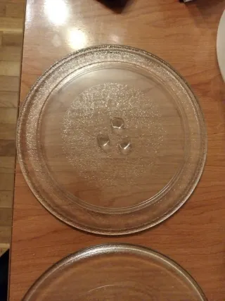 2 platos giratorio de cristal para microondas. Con su aro de plástico correspondiente. - Material: Vidrio el pequeño mide 24.5 de diámetro y el otro 25.5