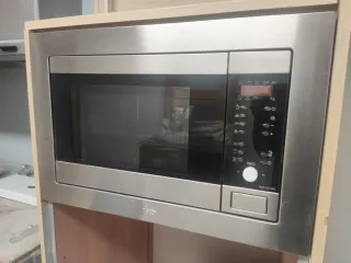 Sin usar, solo viene con esa pequeña tara. No afecta a su funcionamiento. Envio 24H o entrega en mano. Tiene un PVP en tienda de unos 300€. Caracteristicas - 20L de capacidad - 1000W de potencia - Grill y funcion descongelar - Espacio para encastre: 38x56,8x36cm Cualquier otra duda por privado.