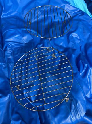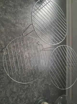Vendo tres parrillas redondas de metal, ideales para hornos o microondas. También son útiles para colocar objetos a dos niveles en estanterías o armarios. Son de 20, 22 y 27 cm de diámetro. Cada una, 4€ Las tres, 10€