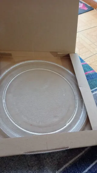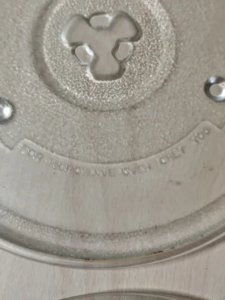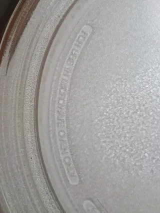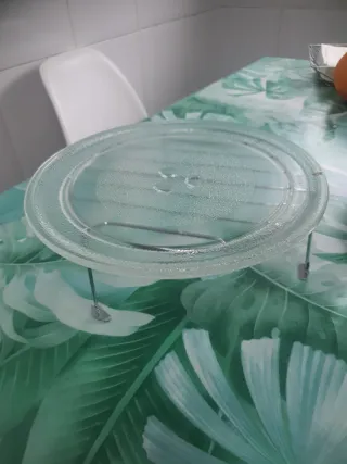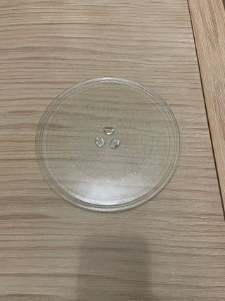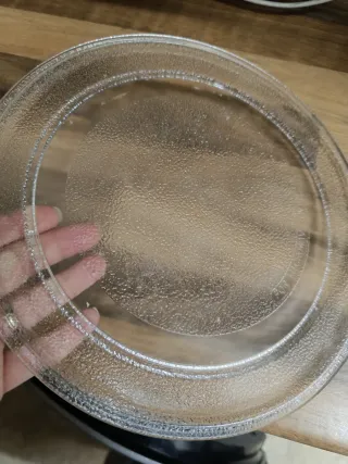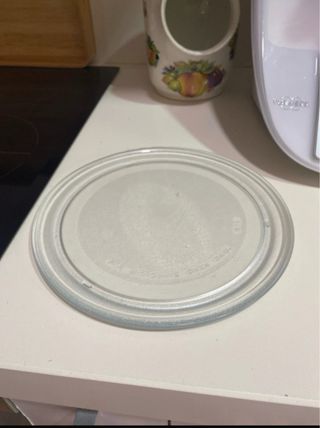 Plato de cristal para microondas. Ideal para reemplazar el plato original o tener uno de repuesto. - Material: Vidrio resistente. - Forma: Redonda. - Diámetro: [Insertar diámetro si se conoce].
