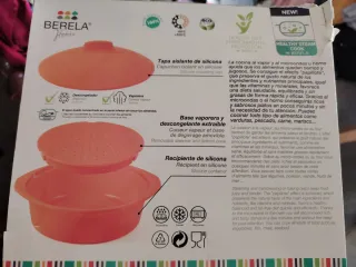 Vaporera redonda de silicona de la marca Berela, modelo Ebuka-Vapround. Perfecta para cocinar al vapor en microondas u horno. - Material: Silicona 100%. - Diámetro: 17 cm. - Capacidad: 1000 ml. - Apta para microondas y horno. - Soporta temperaturas de -60°C a +220°C. - Conserva nutrientes, vitaminas y minerales. - Cocina limpia y rápida sin grasas ni aceites extra. - Preserva el sabor, textura y aroma original de los alimentos. - Alimentos jugosos sin quemarse ni pegarse.