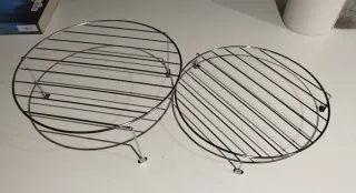 Set de dos rejillas metálicas redondas, ideales para hornos o microondas. - Material: Metal. - Diseño: Rejilla circular con patas. Se pueden vender por separado, a 9 la grande y 6 la pequeña