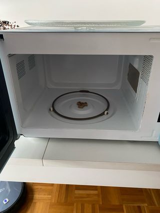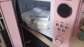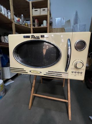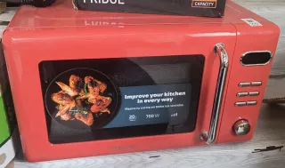 Comprado en octubre de 2024, todavía en garantía. Está impecable, lo vendo porque me he mudado y el diseño no combina con nuestra nueva cocina. Se entrega con la caja original e instrucciones. Microondas grill de estilo retro con capacidad de 20L. Cuenta con función combi y defrost, y tiene una potencia de 700W para el microondas y 900W para el grill. Tiene 3 programas preestablecidos, cocción multietapa y 9 menús preinstalados. Es fácil de limpiar y tiene pantalla LCD con reloj de 12h o 24h.