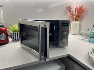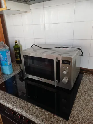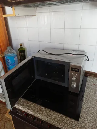 Microondas con función grill en excelente estado. Su diseño moderno y acabado en acero inoxidable lo hacen un complemento ideal para cualquier cocina. - Capacidad adecuada para el uso diario. - Panel de control intuitivo.