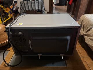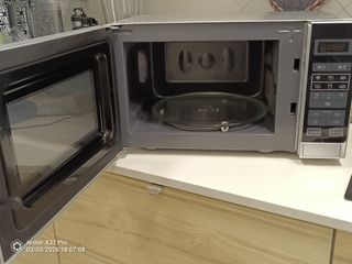 Microondas de la marca Sharp en color plateado y negro. Cuenta con panel de control digital y puerta con cristal. funciona perfectamente. Tiene un poco de óxido en el interior como se ve en las fotos. Lo vendo porque compré uno con horno.Usado hasta ayer.