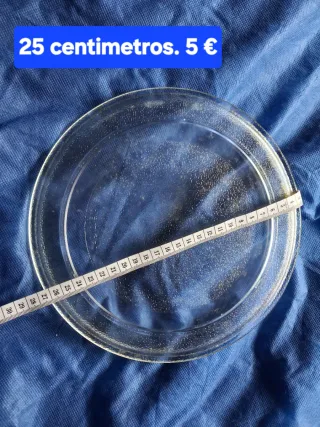 Plato de cristal para microondas. Era de un microondas cecotec, sin embargo lo he probado en un microondas obertozo y también funciona - Material: Vidrio. - Diámetro aproximado: 24,5 cm.