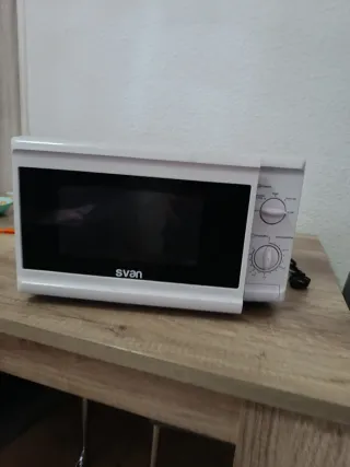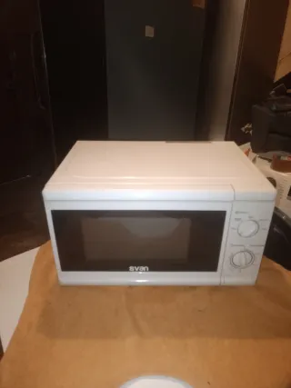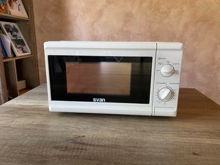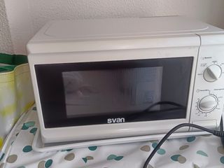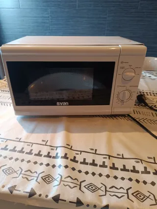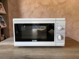 Microondas Svan en buen estado. Es de color blanco y tiene un diseño compacto. - Marca: Svan - Potencia: 700W - Funciones: Descongelar, recalentar y cocinar.