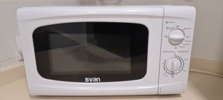 Microondas Svan en color blanco. Un electrodoméstico práctico para tu cocina. - Panel de control intuitivo. - Funciona perfectamente. Lo vendo por falta de uso