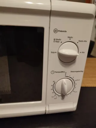 microondas de alta calidad de 1.250w de potencia 23 litros precio en tienda 115 euros se vende por cambio funciona perfectamente lo único que tiene son algunos desperfectos mínimos estéticos que se ven en las imágenes No negociable