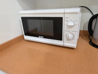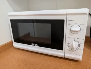 Microondas SVAN en color blanco. Ideal para tu cocina. - Diseño moderno y compacto. - Panel de control intuitivo con diales. Muy poco uso, limpiandolo se rompio la placa interior pero funciona igual de bien.