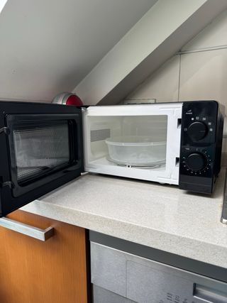 Microondas Taurus Ready Black de 20 litros y 700W en buen estado. - 6 niveles, incluyendo descongelación. - Temporizador hasta 30 min con avisador acústico. - Color negro. - Capacidad de 20L. - Potencia de 700W. - Plato giratorio de 245-255 mm.