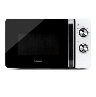 Microondas de la marca Taurus en color blanco. - Diseño compacto y funcional. - Panel de control intuitivo con mandos giratorios. - Puerta con ventana para visualizar el interior.