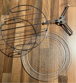 Microondas Teka en acabado plateado. El microondas funciona bien y calienta correctamente, pero varios botones fallan a veces (y hay que pulsarlos varias veces) y la rueda también. Pero los botones de encendido de 1 minuto y de apagado funcionan bien.