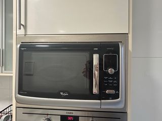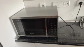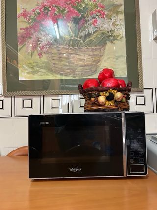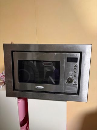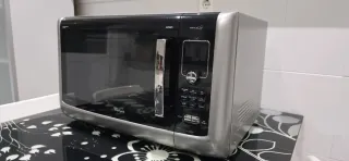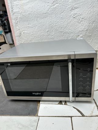 Microondas de la marca Whirlpool en acabado plateado. En perfectas condiciones. Vendo con caja, instrucciones y accesorios. - Panel de control digital con múltiples funciones. - Puerta con cristal. - Diseño moderno.