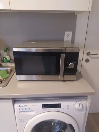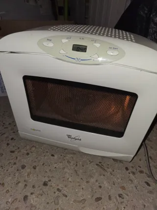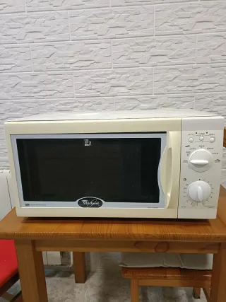 Microondas Whirlpool en muy buen estado, funciona muy bien. Potencia máxima: 1000 W Potencia grill: 1000 W Operación combinada AutoClean Bread Defrost Jet Start Sistema 2D Fermentar Función Yogur Programas Función grill: Sí Características generales Potencia grill/aire caliente 1000 W / - Dimensiones / Peso 49 cm x 32 cm x 42.6 cm / 9 kg 20L NO ES NEGOCIABLE