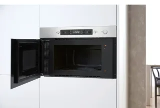 Microondas empotrable de la marca Whirlpool, con acabado en acero inoxidable. - Diseño moderno y elegante. - Panel de control digital con selector giratorio.