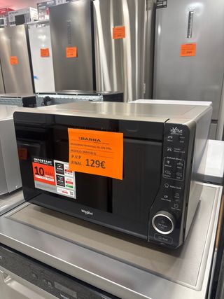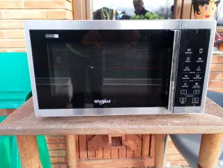 Microondas Whirlpool con una potencia de 900W y función de doble grill.lo único que tiene mal es la puerta con cinta aislante pero no afecta al uso ni a abrirlo ni nada - Potencia: 900W - Función Grill: Sí, doble grill - Marca: Whirlpool