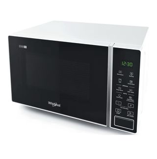 Microondas Whirlpool en color blanco, con panel de control digital y función Auto Defrost. - Diseño compacto. - Puerta con tirador plateado. - Incluye varios programas de cocción.