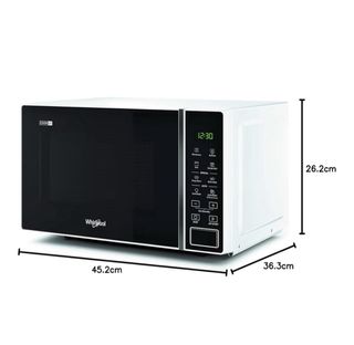 Microondas Whirlpool en color blanco y negro con función grill. - Panel de control digital. - Función Grill. - Programas de cocción preestablecidos.