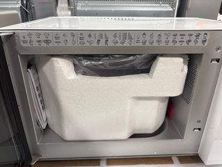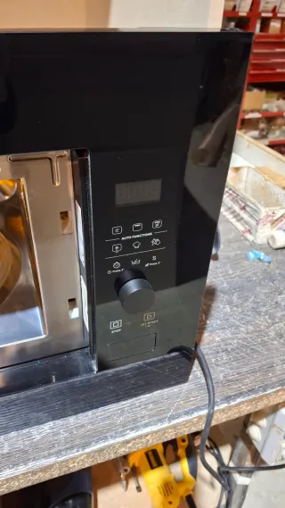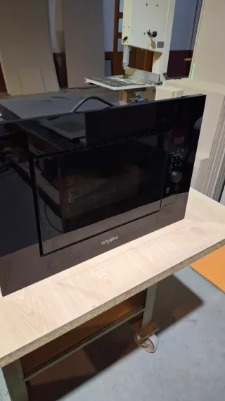 Microondas de encastre Whirlpool AMW 493/1 IX con acabado en acero inoxidable y puerta de cristal negro. 22litros. Tiene funcion Crisp, Grill, descongelar... Funciona perfectamente pero no todos los leds del display se encienden y puede ser un poco difícil la hora en la pantalla.
