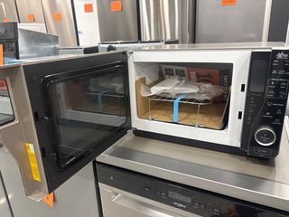 Microondas Whirlpool en color plateado y negro. - Diseño moderno. - Panel de control digital.