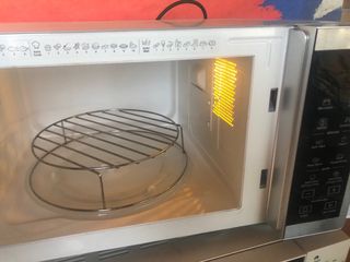 Bandeja microondas especial para la función Crisp en buen estado con el mango para no quemarse.
