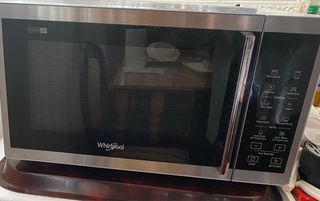Funciona perfectamente, tiene muchos modos de uso. Excelente alternativa a falta de horno convencional. Horno de microondas Whirlpool con tecnología Dual Crisp. - Capacidad de 33 litros. - Modelo MWP 3391 SX. - Diseño moderno en color acero inoxidable y negro.