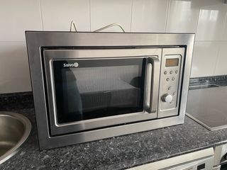 Microondas de sobremesa con acabado en acero inoxidable. - Diseño moderno y elegante. - Panel de control con botones y dial. - Puerta con ventana para ver el interior. Enciende, a veces calienta y a veces no. Habría que revisarlo. Estado estético perfecto. Se puede encastrar o no.