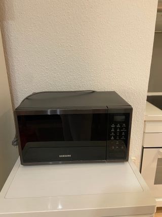 Microondas Samsung modelo MG23J5133AG, fabricado en 2018, en perfecto estado de funcionamiento. Cuenta con función microondas y grill, con una potencia de 800 W de salida. Está usado, pero si se entrega limpio queda en muy buen estado, prácticamente como nuevo. Se vende por no utilizar desde hace 2 años. Solo Entrega en mano